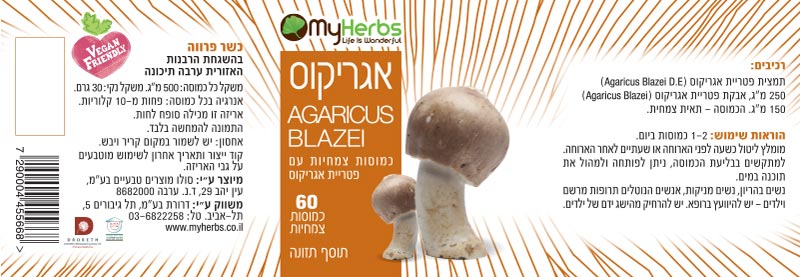 רכיבים: תמצית אגריקוס (גוף הפרי), אבקת אגריקוס (גוף הפרי).